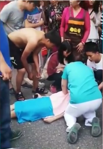 “當(dāng)時(shí),有個(gè)女孩子躺在地上,呼吸特別微弱。她的閨蜜在一旁很著急的樣子,但也不知道該怎么辦?!毙祧位貞?,學(xué)過(guò)心肺復(fù)蘇的他把手機(jī)交給同伴,就展開了施救。他讓人群散開,保持空氣流通,又讓女孩的閨蜜掐其人中,請(qǐng)一位圍觀者伸手墊著女孩的頭部,自己則十指重疊按壓暈倒女子胸口。