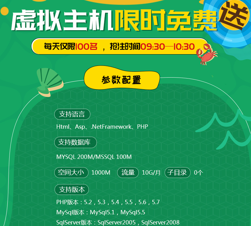 據(jù)悉,億恩科技將于本月27日開始,舉行為期一個月的夏日送涼活動,凡參加該活動的用戶都有得免費的虛擬主機(jī)機(jī)會,每天上午限時100名搶注活動,搶注時間:09:30-10:30。